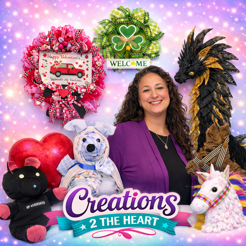 Welcome to Creations 2 the Heart, a Jacksonville, Florida–based small handmade business creating meaningful, handcrafted gifts for families everywhere. I’m the heart behind the shop—a crafty grandmother who loves turning cherished clothing and simple ideas into beautiful keepsakes and personalized creations. I specialize in handmade diaper cakes for baby showers, memory keepsakes made from cherished clothing including blankets, keepsake bears, and memory pillows, as well as decorative wreaths and other miscellaneous handmade crafts for home décor and gifts. Every piece is thoughtfully handcrafted to celebrate life’s special moments and preserve memories with unique gifts made from my heart to fill yours. 💗